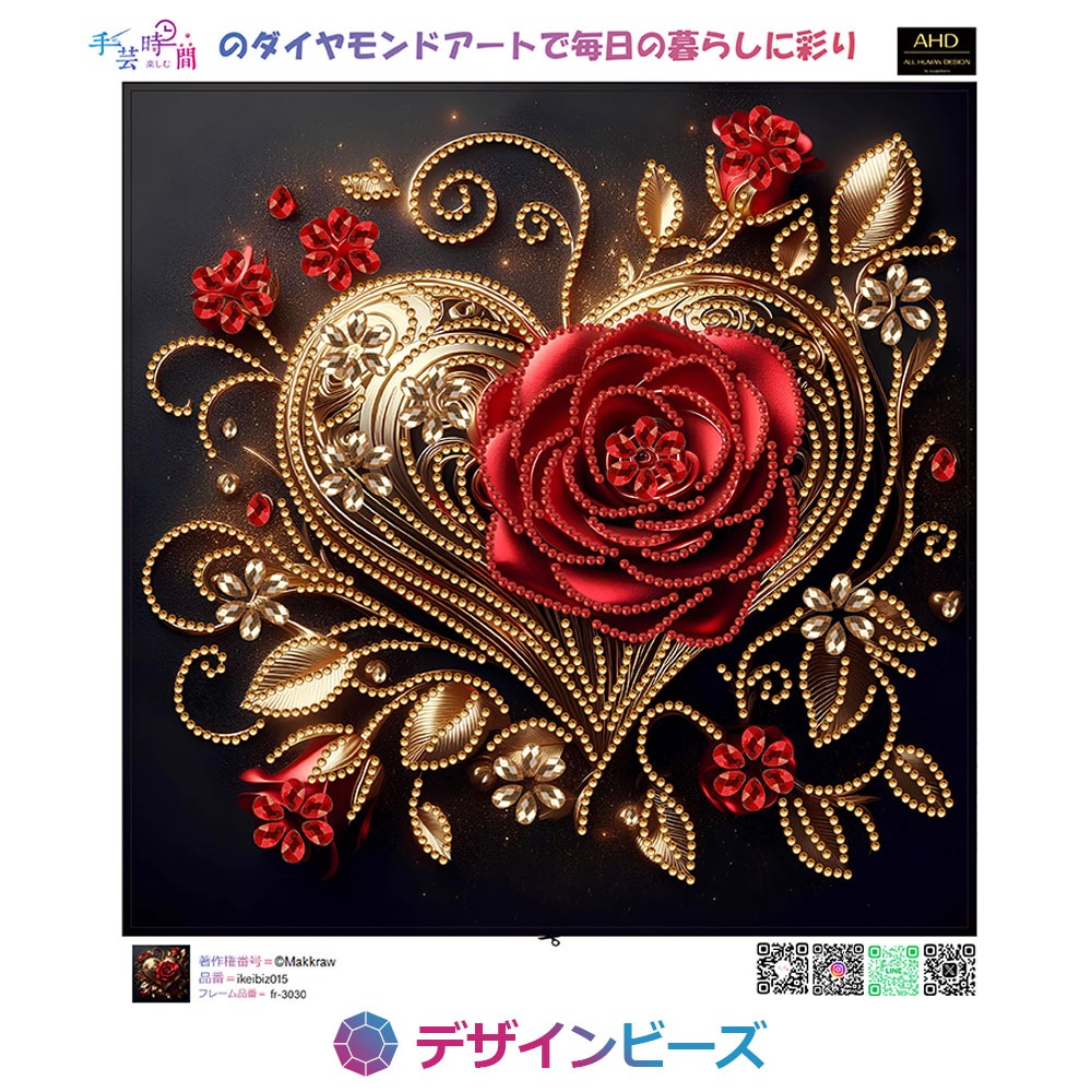 ★ゴールドのハートに赤いバラ。ゴージャスで情熱的な雰囲気の一枚です。