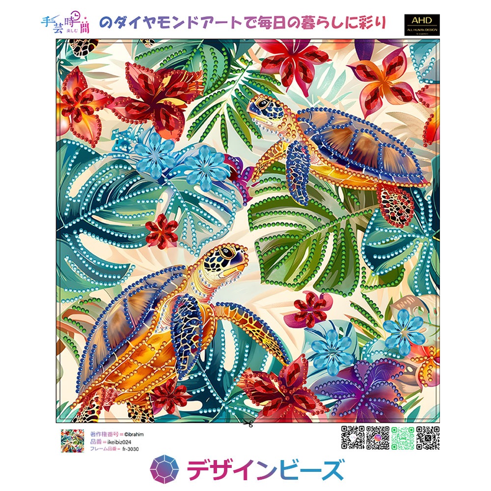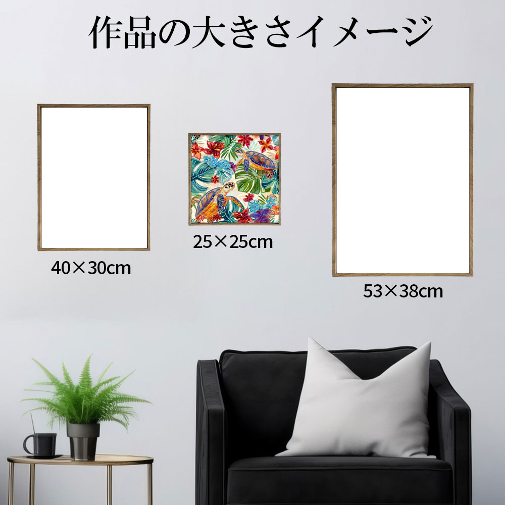 ★ウミガメとモンステラ、ハイビスカスなどハワイアンな雰囲気の一枚。