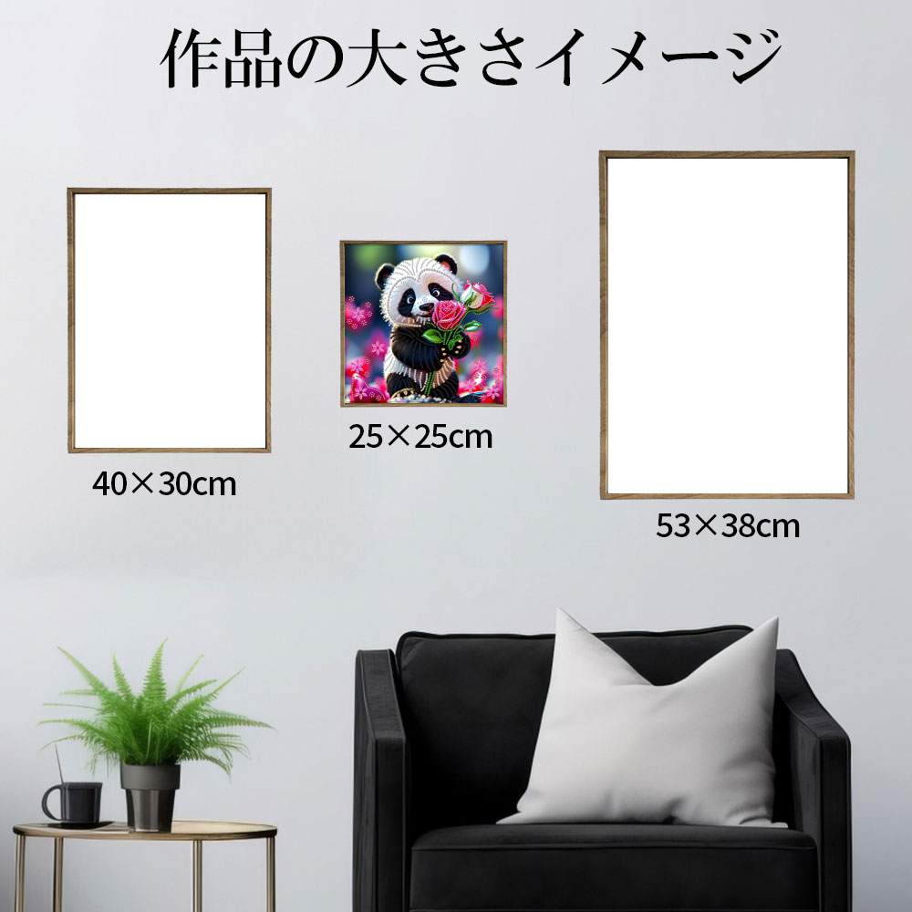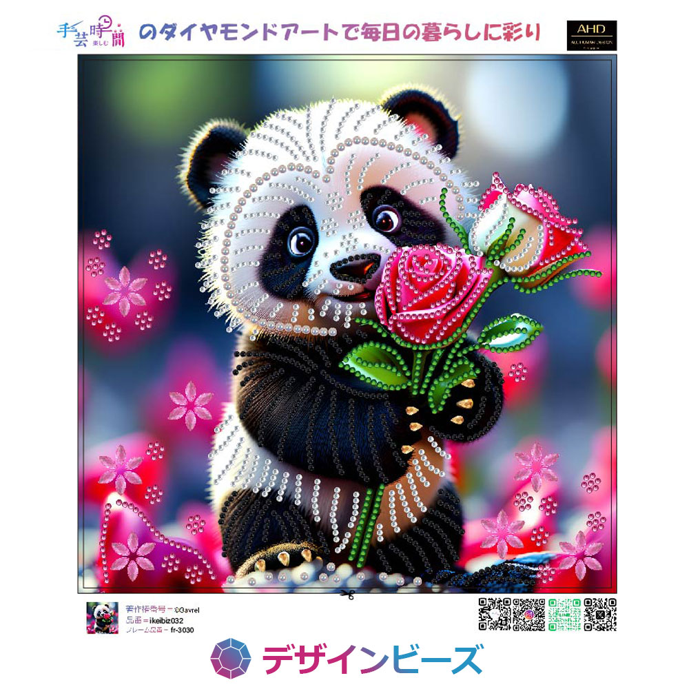 ★バラの花を抱えてほほ笑むパンダ。ビーズで彩ってかわいく仕上げて。