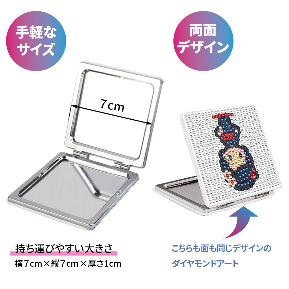 ★化粧ポーチに収まるサイズのコンパクトミラー。両面にダイヤモンドアートが施され、見た目も華やかです。