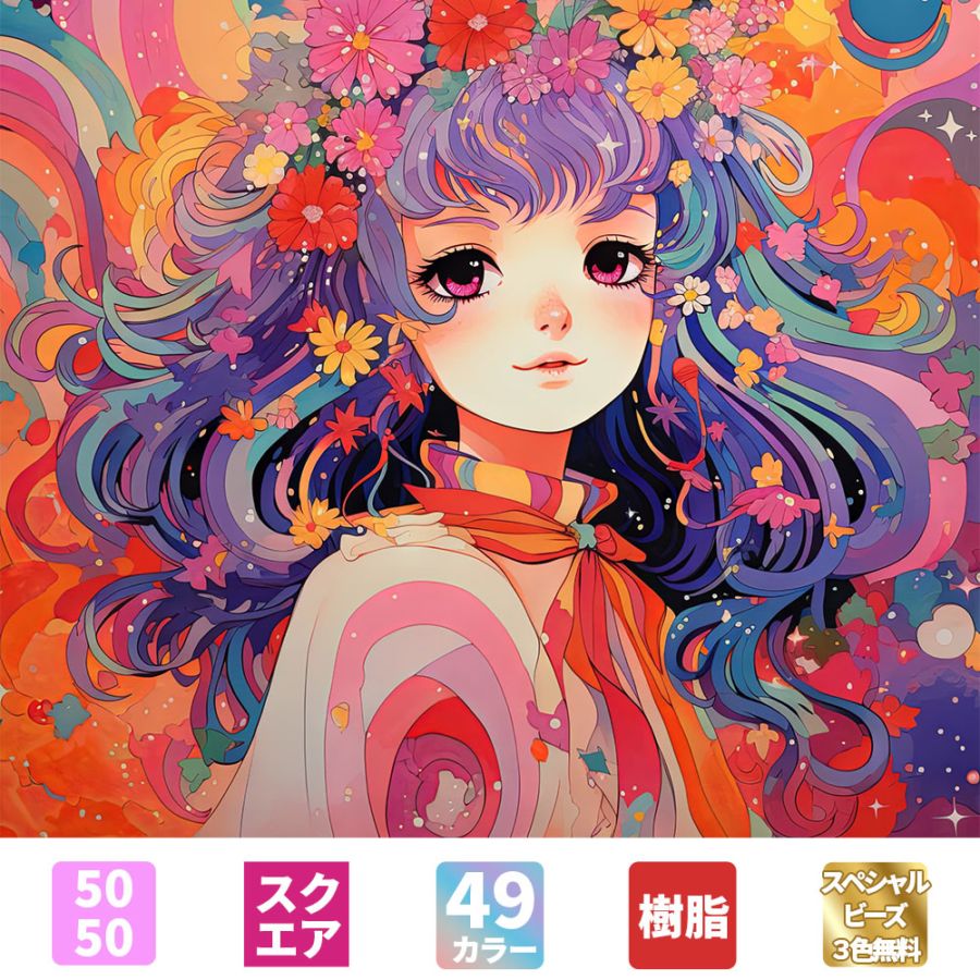【手芸時間】ダイヤモンドアート キット【日本製下絵】【粘着成分国内試験済み】AHD027 絵画 花と少女の幻想風景 50×50cm スクエア 樹脂ビーズ スペシャルビーズ付 仕上げ剤付