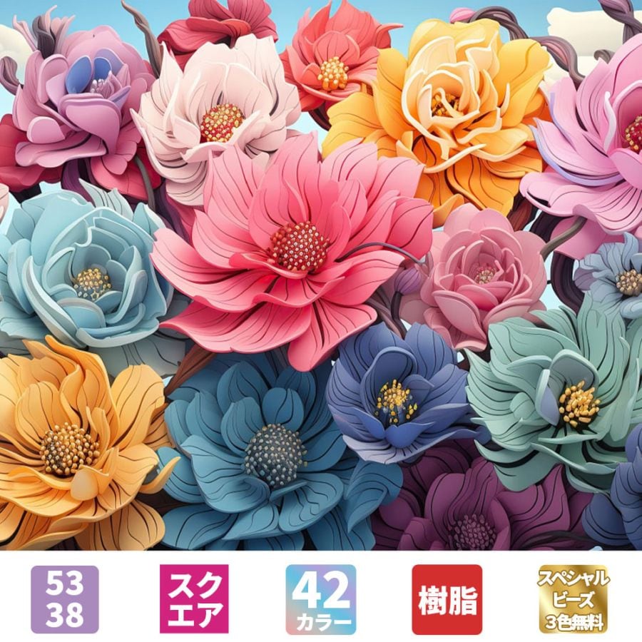 【手芸時間】ダイヤモンドアート キット【日本製下絵】【粘着成分国内試験済み】AHD029 絵画 色とりどりの立体花 53×38cm スクエア 樹脂ビーズ スペシャルビーズ付 仕上げ剤付