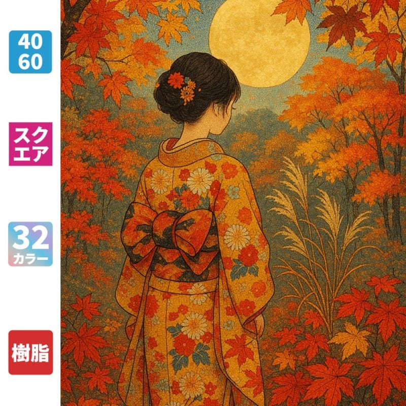 【手芸時間】ダイヤモンドアート キット【日本製下絵】【粘着成分国内試験済み】AHD034 秋の月夜 絵画 40×60cm 樹脂ビーズ スクエア スペシャルビーズ付 仕上げ剤付