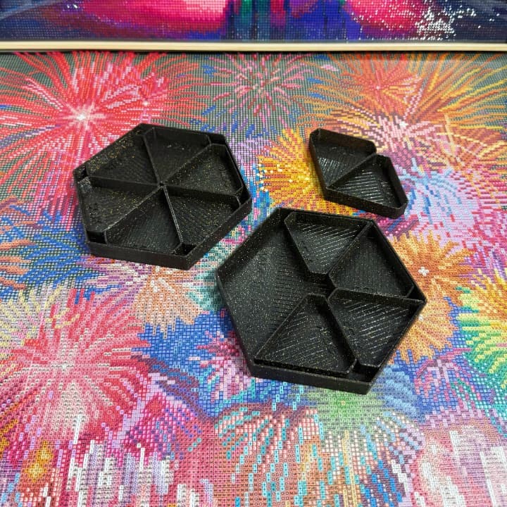 六角形ビーズトレー3角形トレー6つセット スプーン・ブラシ付き カラフル