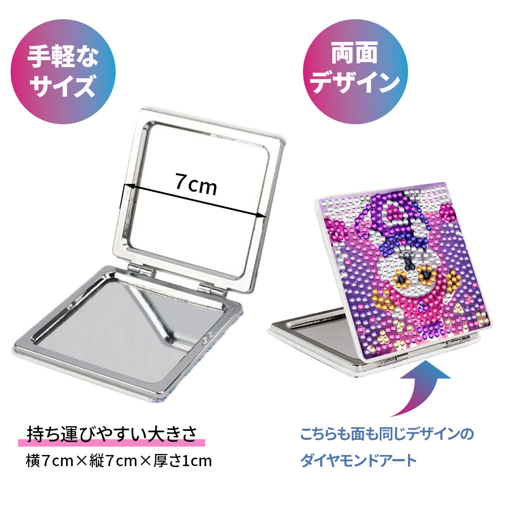 ★化粧ポーチに収まるサイズのコンパクトミラー。両面にダイヤモンドアートが施され、見た目も華やかです。