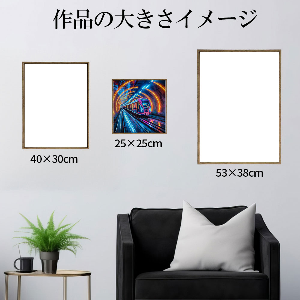 ★鮮やかな光に包まれ走る未来都市の電車。飾ればお部屋の雰囲気も未来的に。