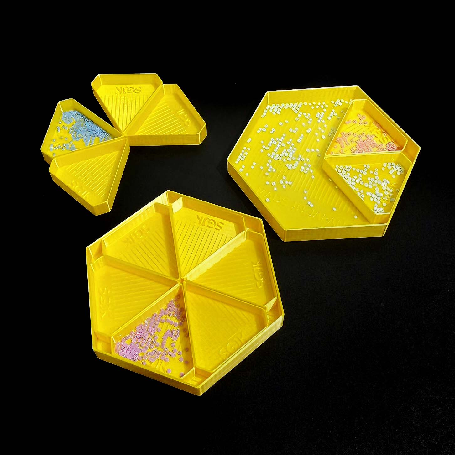 小さな三角形トレー6個と大きな六角形トレーの7個セット。