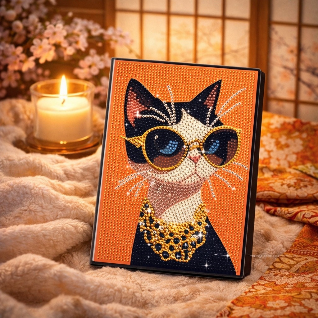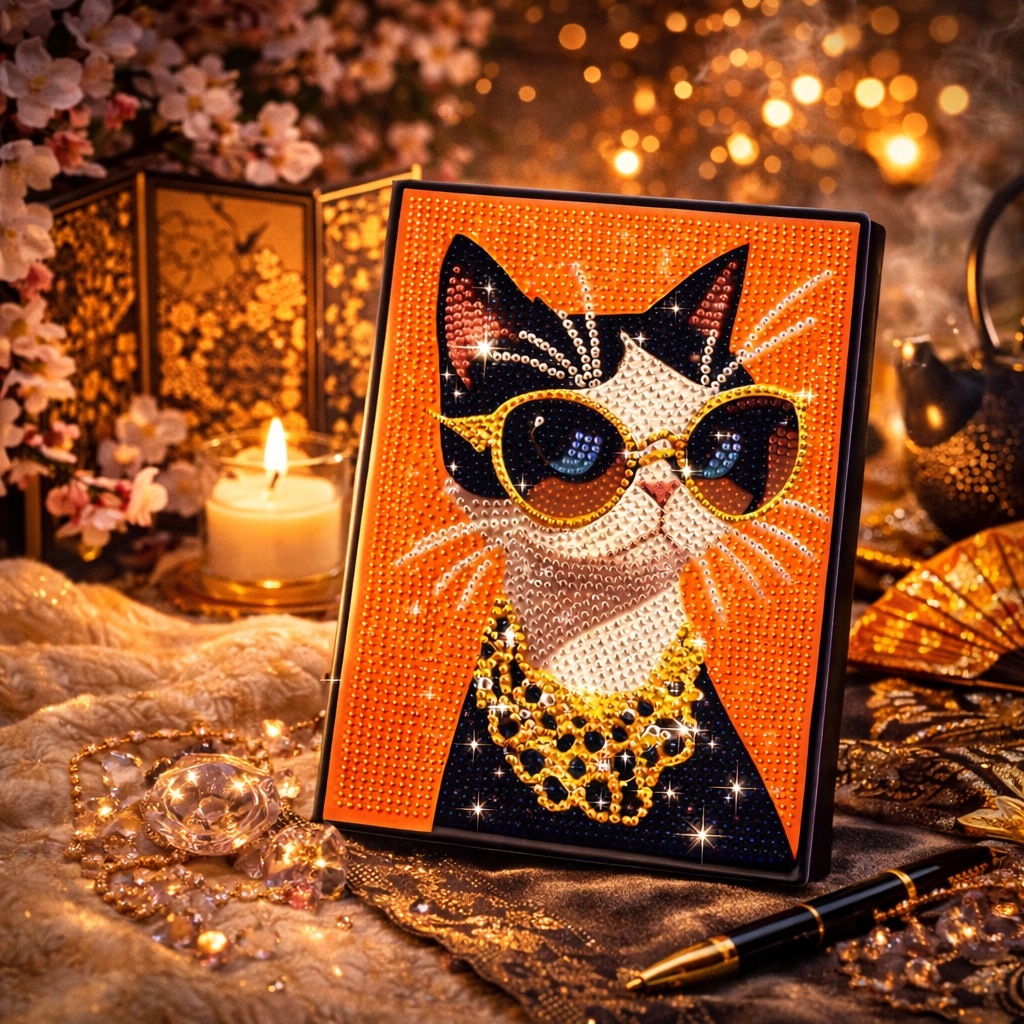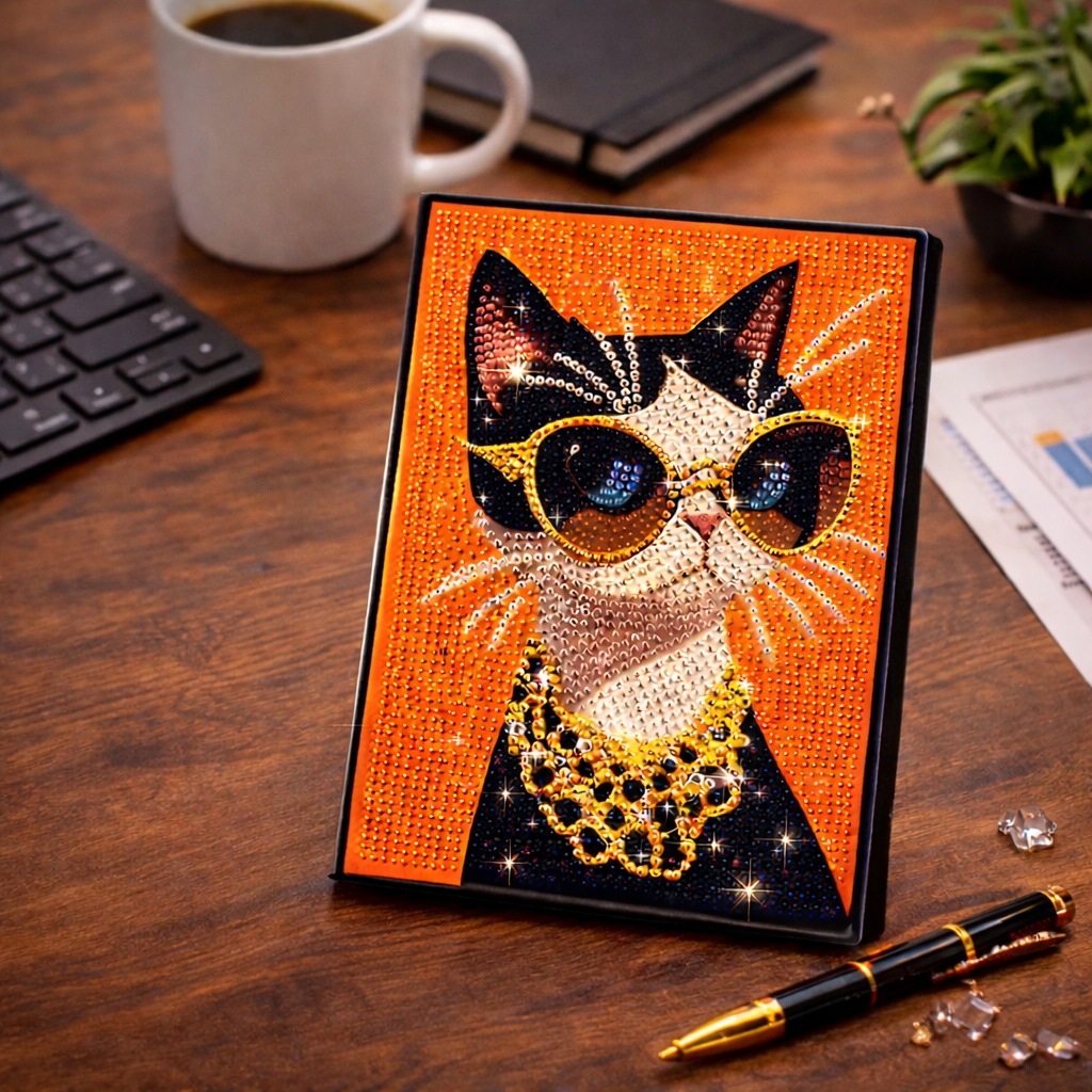 おしゃれな猫デザインとキラキラ輝くダイヤモンドアートが融合した特別なノートです。