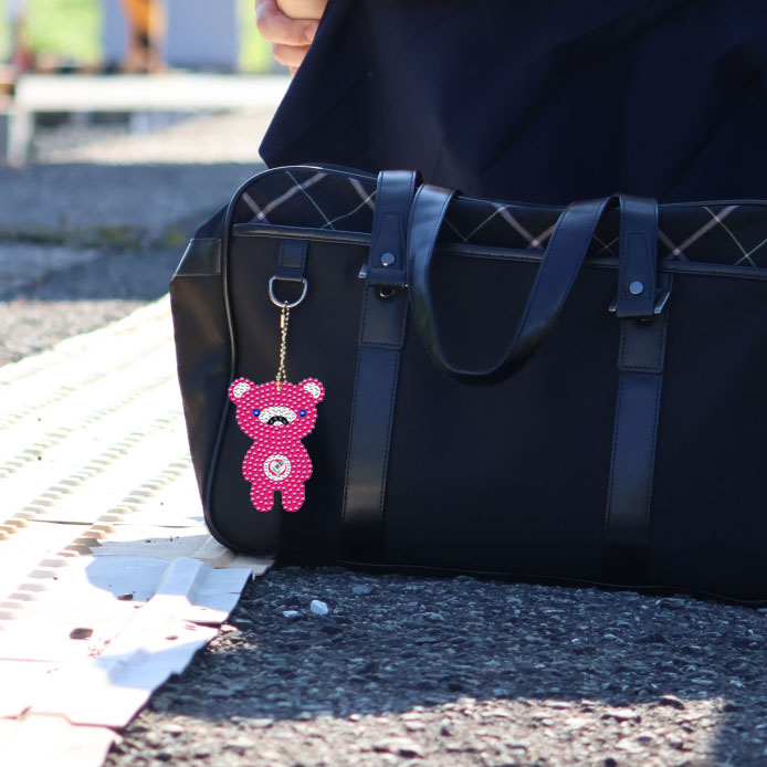 完成後は、鍵やバッグ、リュックなどにつけて。